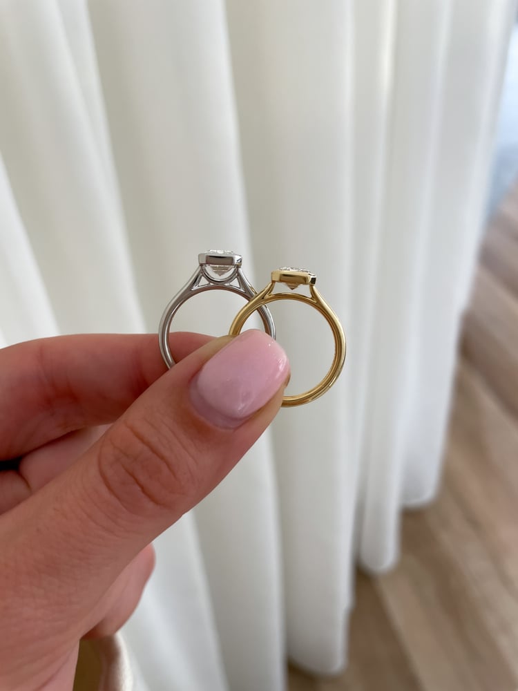 And lastly, it allows for a lot of creativity. Our Bennie Radiant Bezel Solitaire with Cathedral Setting is a beautiful example of our cathedral settings at Cullen Jewellery. The hidden pavé above the arches is a great place to hide some customisation, like birthstones or coloured gemstones.