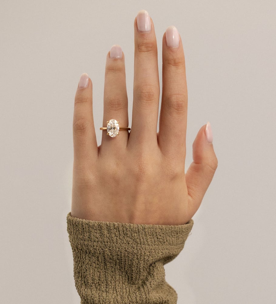 Our Bethany – Oval Solitaire with Hidden Halo with a lab diamond oval that has a classic 1.4 ratio