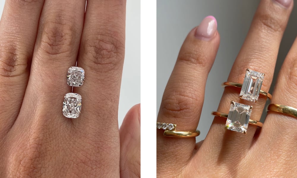 Beyond the 4 Cs lies a subtle detail that shapes everything – the length-to-width ratio of a lab grown diamond. It influences how a stone sits on the hand, how the light moves through it, how large it appears at a glance, and its cost. Some ratios feel sculptural and elongated, others compact and bold. On a longer finger, a slender stone might emphasise its length. On a shorter finger, wider cuts tend to look more in proportion with the hand’s natural shape. There’s no ‘perfect’ ratio – only the one that feels right for you. Because at the end of the day, the most unique lab grown diamond is the one that reflects your style and story.