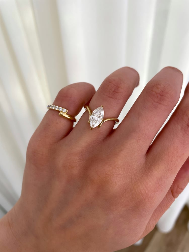 Pear shaped diamonds are symbols of longevity, love, faithfulness, and the enchanting beauty of nature. Beyond its charm, the pear-shaped diamond holds significance for couples as a symbol of independence, individuality, and empowerment. Pear shaped diamonds symbolise a relationship that embraces growth and embarks on an adventurous love journey. The elongated pear shape of the diamond can accentuate and lengthen the appearance of the wearer’s fingers, contributing to its elegant and sophisticated look.