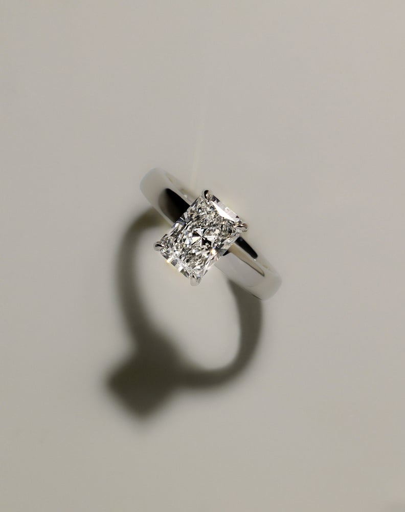 Radiant cut diamonds merge the brilliance of round diamonds with the elegance of emerald cuts, offering a vibrant choice for those seeking a modern yet timeless symbol of love. Known for their bright sparkle and trimmed corners, radiant cuts embody innovation, creativity, and energy.