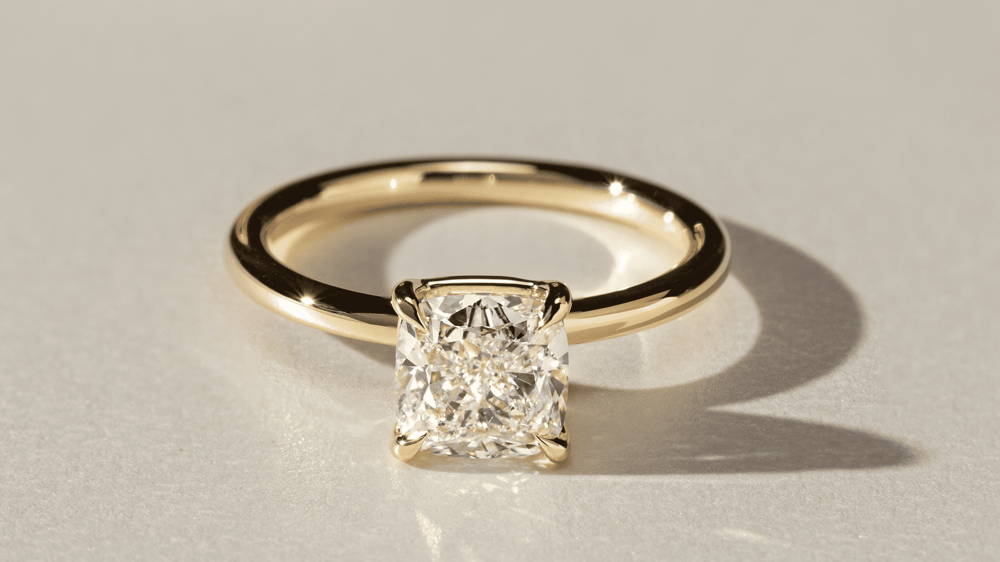 Fast becoming a favourite, the Cushion cut melds the square and round shapes, punctuated with rounded corners and 58 facets. Its pillow-esque form radiates symmetry and charm, especially when incorporated into engagement ring designs.