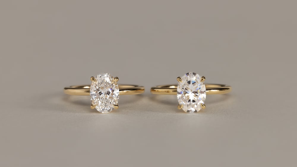 The difference between moissanite and diamond is definitely subtle, but it is noticeable if you know what you are looking for. Moissanite is a gemstone in its own right and has its own beauty, but when compared with diamond, it exhibits a slightly different level of sparkle and fire which diamonds don’t have. For some, this makes moissanite a unique opportunity to have a ring that breaks tradition, or a sparkle to their gemstone that suits them best.