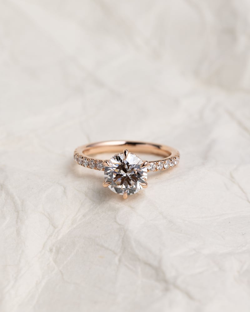 Dreaming of a rose gold engagement ring? Explore our ready to ship engagement rings or create your lab grown diamond, moissanite or lab grown sapphire engagement ring with our engagement ring builder.