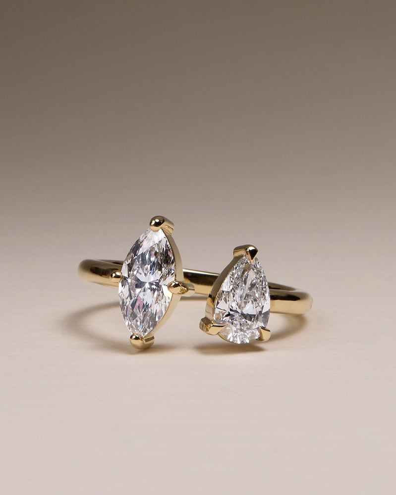 Tanya Oval and Emerald Toi et Moi ring, while others like the Salma Pear and Marquise Toi et Moi are on an open band, perfect for a unique look.