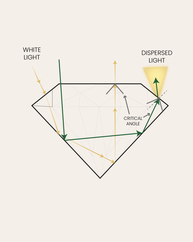 However, fire is only one aspect of sparkle. Brilliance and scintillation are also two important factors. Brilliance refers to your gem’s ability to reflect unbroken white light back to your eye. As white light enters the stone, some of it will remain unbroken, bouncing back out of the stone in one straight beam. A stone’s refractive index measures how much of this unbroken white light (brilliance) it can reflect. When you think of sparkle, you are thinking of a stone’s combined fire and brilliance. These two actions work together and complement each other to create a beautiful glitter in your stones.