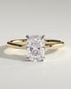 Leonora is a sophisticated 4-claw solitaire design showcasing an exquisite elongated cushion cut stone, available in both high and low setting heights.