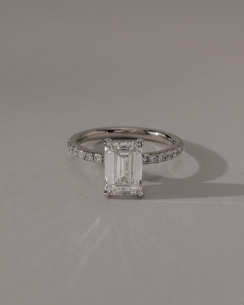 Of course, Paris' engagement ring played a starring role in the couple's love story. The 20-carat emerald-cut diamond at its centre is framed by smaller step cuts on each side, creating an eye-catching display.
