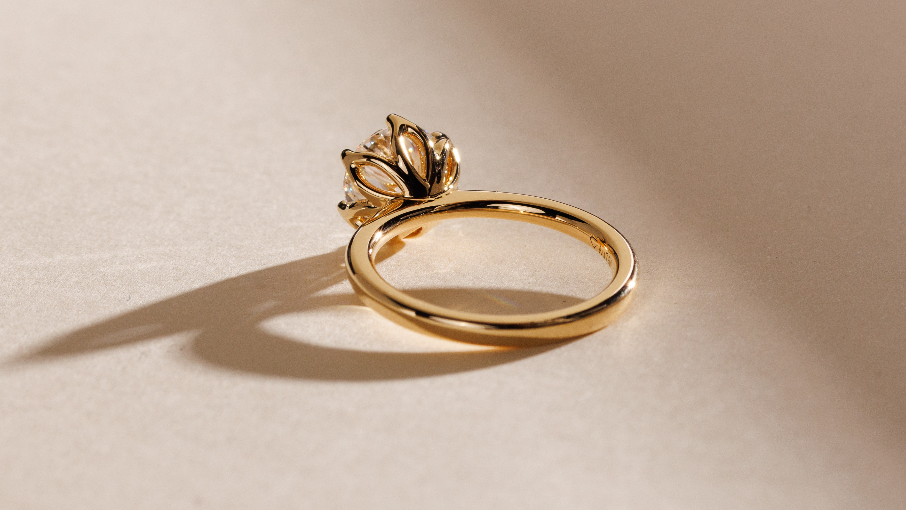 Rather than surrounding the centre stone, the halo in this setting sits beneath the centre stone, and is visible from the side. While your ring will be simple and sleek from the top, the sparkle will still continue from the side, and is a wonderful way to customise your ring according to your preferences – a great choice for those with a minimal style.