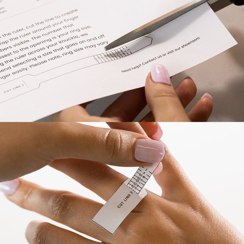 Our complimentary ring sizer allows you to measure your ring size from the comfort of your own home.