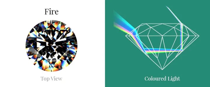 Before we begin, let’s have a quick look at what “sparkle” actually means. When white light enters a gemstone, it is broken up as it bounces around inside the stone. As it exits through the top of the stone, it leaves as a colourful flash. This creates a beautiful, dazzling effect called fire. Gemstones that can break up white light into colourful sparkles are described as “fiery” stones. Many gemstones exhibit fire, including diamonds. The special quality of moissanite is how much fire it displays. It is well-known for this feature.