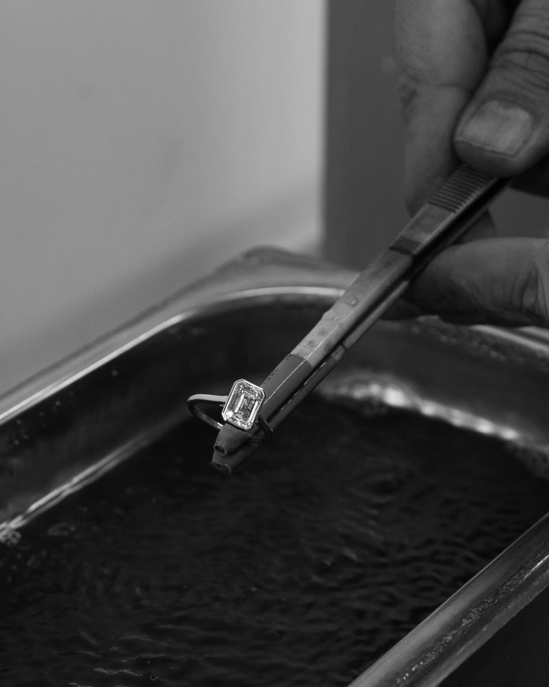 You will be the best judge of whether your ring is in danger but if ever in doubt, we’d recommend just removing your ring and storing it somewhere safe – it is always better to ensure the safety of your beautiful, extremely valuable custom piece. To maintain your engagement ring’s beautiful sparkle, it is important to take appropriate care of your stone throughout your lifetime. This means protecting it from exposure to harmful substances and from activities that could damage either the stone, precious metals or setting of your ring.