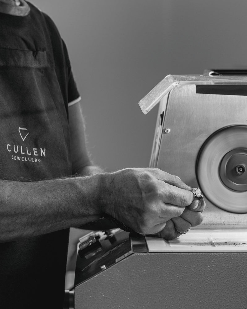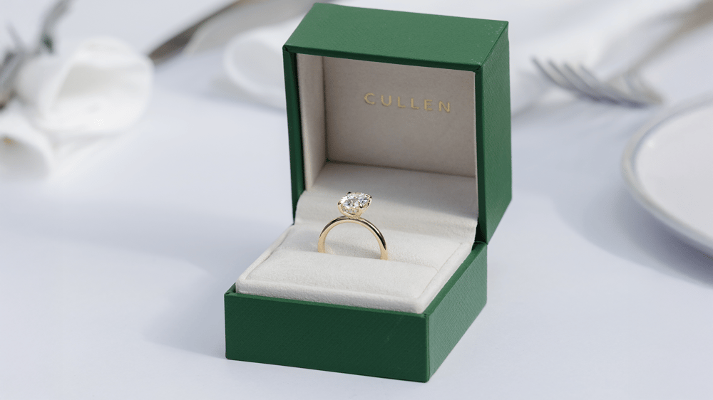 Make sure to avoid using any harsh cleaning products on your ring, as this can corrode your ring’s precious metals. If your ring from Cullen requires a deeper clean, we offer a complimentary ultrasonic cleaning that only takes five minutes and can be booked on our website under the ‘Drop-Off’ appointment type. We recommend having your moissanite engagement ring professionally cleaned at least once a year, as this will remove the natural build-up of oils and grime on the surface of your ring. A professional can also inspect your ring for any loose stones and ensure your prongs are still in good shape. Getting a professional deep clean will bring your moissanite’s sparkle back to its original brilliance!