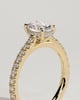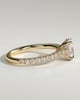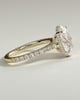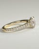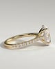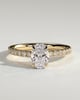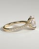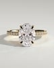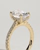 Julia is a stunning 4-claw oval solitaire featuring a sparkling hidden halo, sweeping cathedral arches and a 2/3 pavé band.