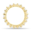 Available in a full or half eternity style, Adeline is a breathtaking wedding ring showcasing a row of striking radiant cut stones held within beautifully rounded claws.