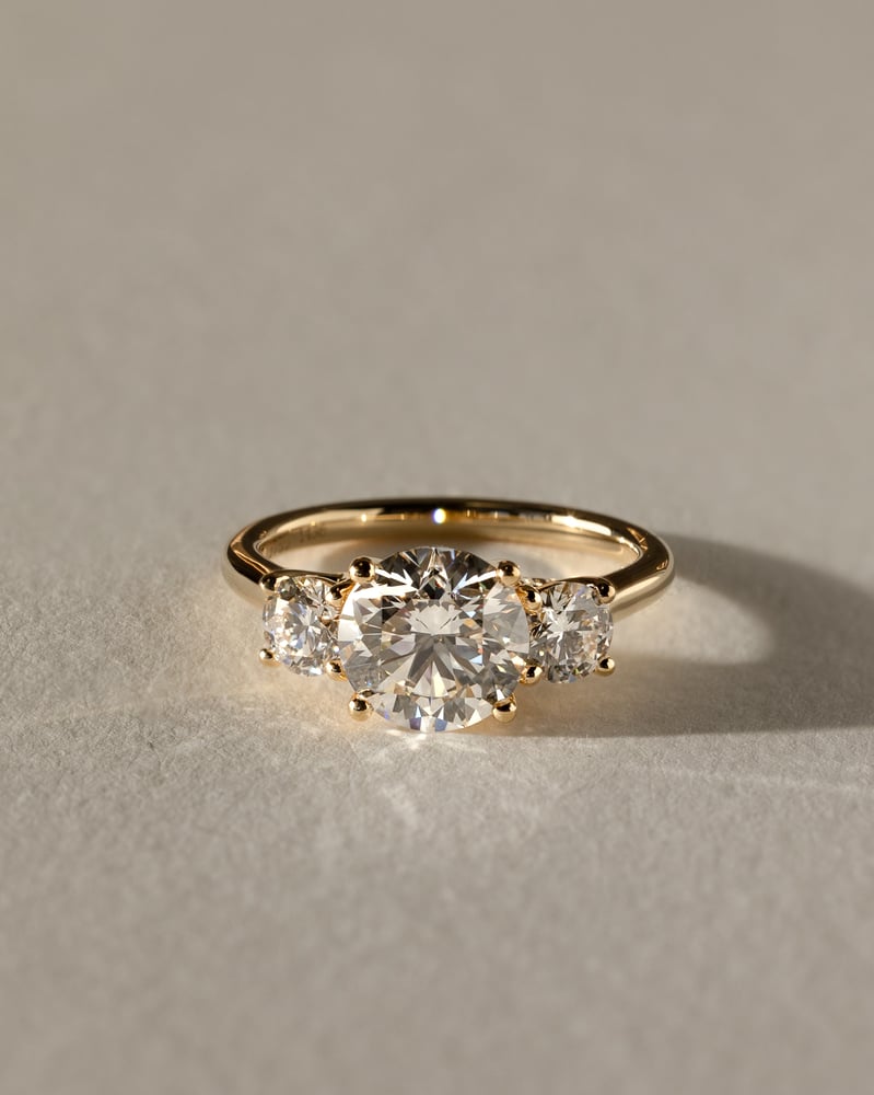 Moving onto the 1930–40s, during the Great Depression and World War II, designs became more delicate. White gold began replacing platinum, and filigree details emerged in complete juxtaposition to the geometric designs of the Art Deco era. As for the centre stones, round brilliant cuts were popularised here – and is the era many of today's old mine cuts (which we’ll cover later) originate from. Post war, in the 1950s, the economy was booming and it’s clear to see this change in the engagement rings from this time. Rings from the '50s were luxurious, feminine, and featured larger centre stones often surrounded by accent diamonds — giving rise to trilogy engagement rings which we are seeing become more popular recently. Other cuts popularised in this time include asscher, emerald and marquise which have all been on the rise again – so we can see that bold opulence is seeping back into engagement jewellery.