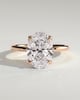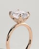 Aurelie is a 4-claw oval that offers a twist on a classic solitaire with an accented petal gallery. Emphasising beauty in the smallest details, a secret hidden halo is encased within the petite petals, offering support for a subtle yet elegant form.