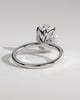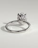 Aurelie is a 4-claw oval that offers a twist on a classic solitaire with an accented petal gallery. Emphasising beauty in the smallest details, a secret hidden halo is encased within the petite petals, offering support for a subtle yet elegant form.