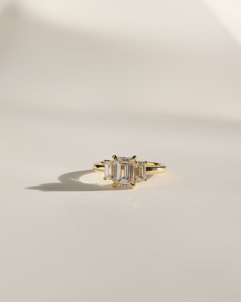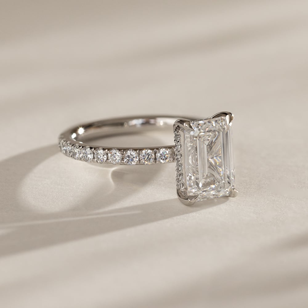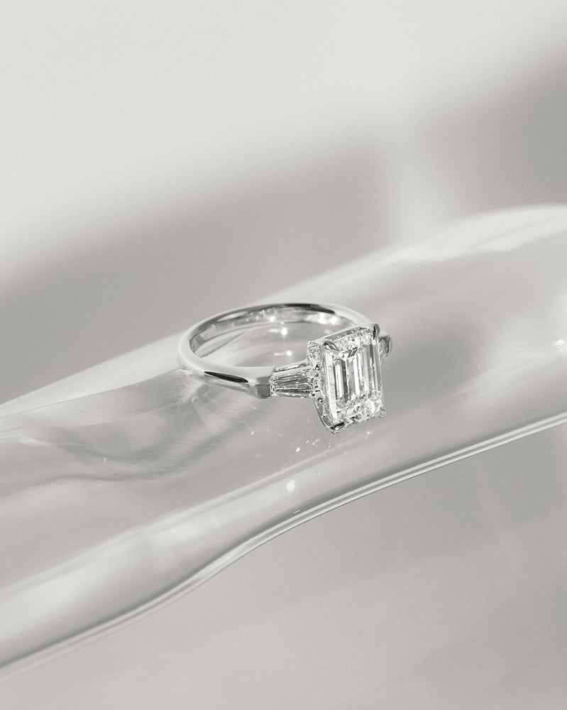 Of course, Paris' engagement ring played a starring role in the couple's love story. The 20-carat emerald-cut diamond at its centre is framed by smaller step cuts on each side, creating an eye-catching display.