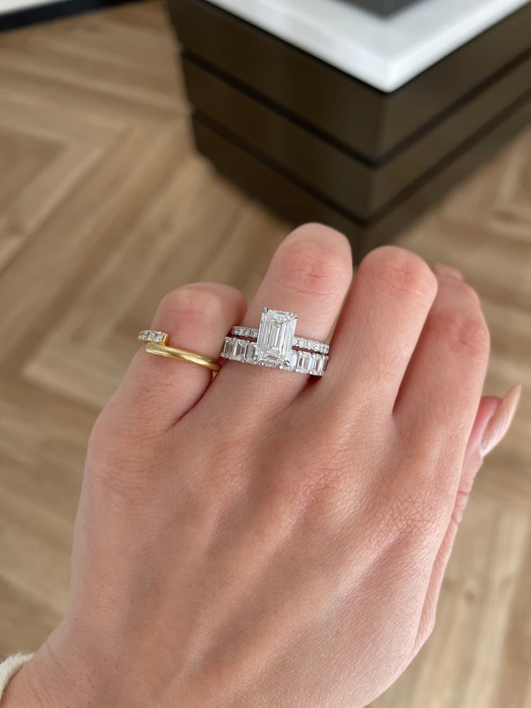 Carter, a venture capitalist, worked closely with jeweller Jean Dousset to craft a ring that captured Paris' essence in a unique and sentimental way. Reum's main priority was infusing the ring with personal touches to represent his love for Paris. The result? A stunning engagement ring that blends classical and Art Nouveau era influences, featuring a 20-carat emerald-cut centre stone flanked by baguette-cut and trapezoid accent diamonds.
