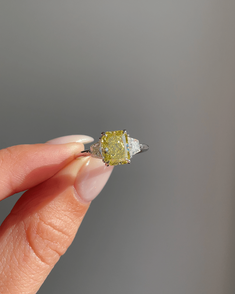 Yet, J.Lo's second engagement ring from Affleck outshines the first in rarity and sentimental value. The central green diamond, sourced by Ilan Portugali of Beverly Hills Diamonds, is a testament to both skilful design and Lopez's personal connection to the colour. The actual ring design, a collaboration between Tamara Rahaminov and Nicol Goldfiner of Rahaminov Diamonds, features an 8ct fancy vivid yellowish-green diamond at its heart. This striking centrepiece is flanked by elongated baguette diamonds and a pair of trapezoid diamonds on either end.