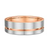 The Jack wedding ring is a striking mixed metal design featuring a brushed finish band inlaid with a polished groove.